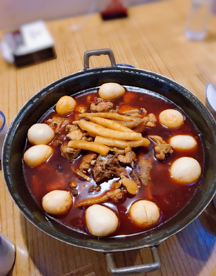 梁山鸡是一道近几年流行于重庆的江湖菜,它的发明者被冠以重庆最拽餐馆的名号。当重庆麻辣红汤遭遇当归、沙参、枸杞等数位滋补中药材会起着怎样的化学反应?梁山鸡成菜汤色红亮、鸡肉软糯、厚重而不焦躁。在传统的麻辣味型中带着滋补的中药香气和鲜味。既有重庆美食麻辣鲜香的口感,又有滋补中药材的温补与醇和,既好吃可口,又温补身体。