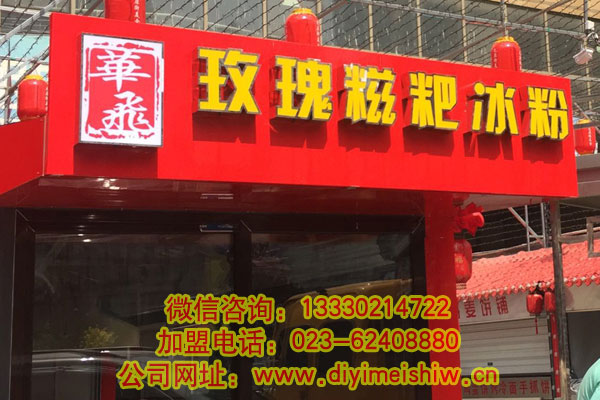 重庆餐饮加盟总部旗下褚先生的辽宁省沈阳市玫瑰糍粑冰粉加盟店门口招牌展示图片一,重庆餐饮加..[详细]