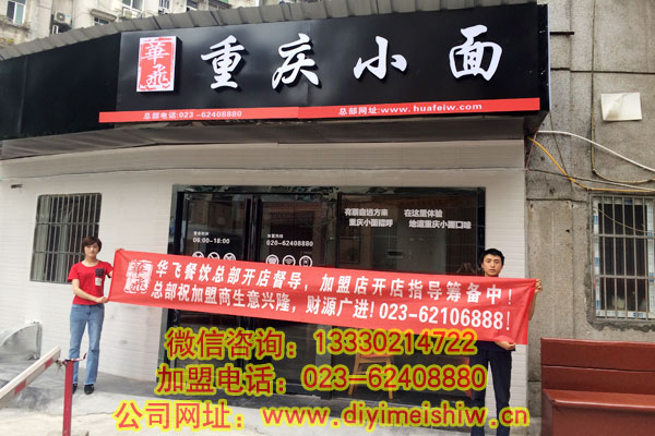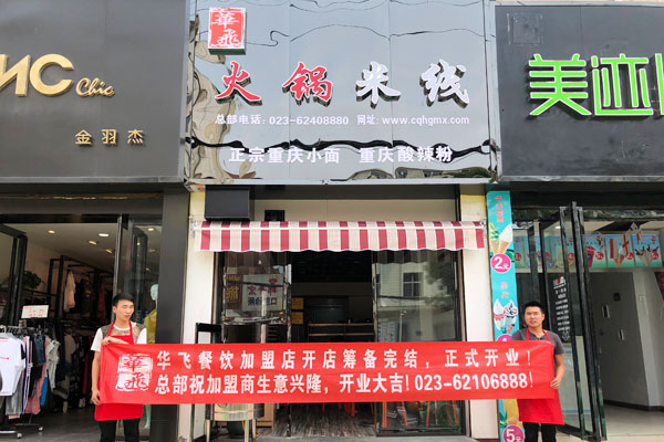 重庆餐饮加盟总部旗下梁女士的贵州省贵阳市酸辣粉加盟店内环境展示图片一,华飞餐饮总部祝贺梁..[详细]