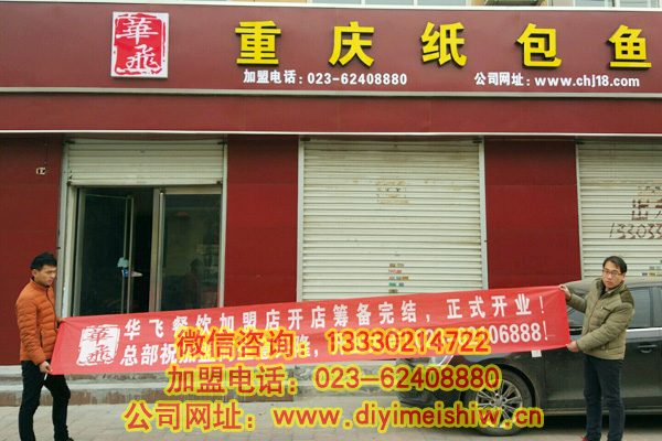 重庆餐饮加盟总部旗下赵先生的河北省邯郸市纸包鱼加盟店筹备完结正式开业的展示一,华飞餐饮祝..[详细]