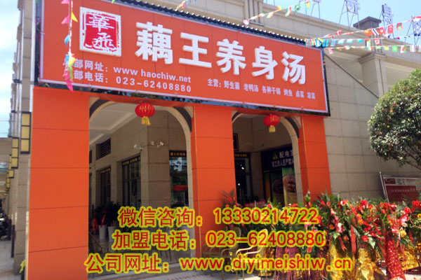 重庆餐饮加盟总部旗下令狐先生的贵州省遵义市藕王养生汤加盟店门口招牌展示一,重庆餐饮加盟总..[详细]