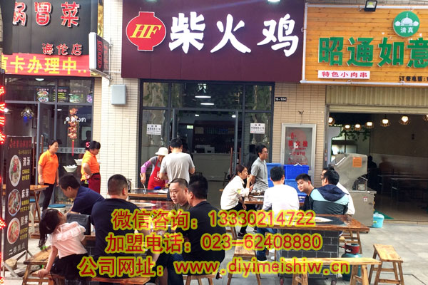 重庆餐饮加盟总部旗下谢先生的云南省昆明市柴火鸡加盟店门口招牌展示图片一,华飞餐饮总部祝贺..[详细]