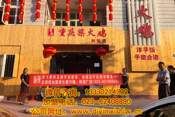重庆餐饮加盟总部旗下何女士的湖北省咸丰县重庆柴火鸡加盟店门口招牌展示一 关于餐饮学..[详细]