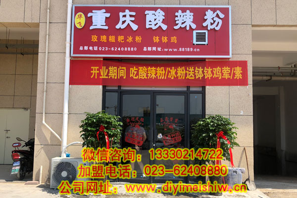 重庆餐饮加盟总部旗下席女士的河南省郑州市重庆酸辣粉加盟店门口招牌展示一 关于餐饮学习..[详细]