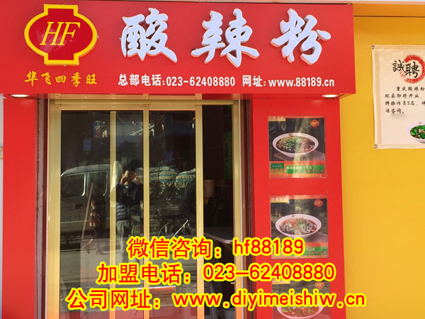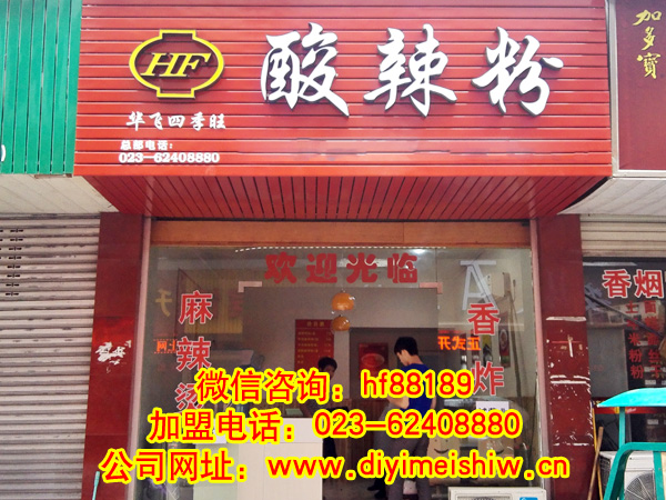 甘肃省庆阳市酸辣粉加盟商黄女士的酸辣粉加盟店门口招牌展示图片一