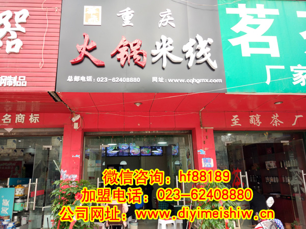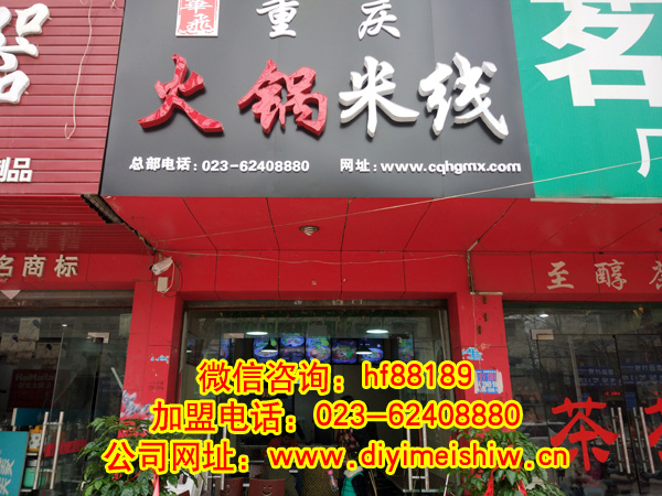 河南省泌阳市火锅米线加盟商李先生的火锅米线加盟店门口招牌展示图片一