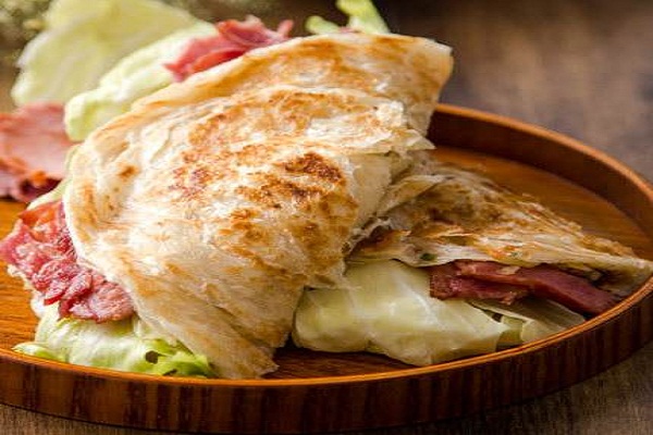 新鲜出炉后的手抓饼,千层百叠,层如薄纸,用手抓之,面丝千连,其外层金黄酥脆,内层柔软白嫩,一股葱油与面筋的香味扑鼻而来,让每个人来不及等待,抓起就吃。至今一直风靡全国,可搭配鸡蛋、猪肉叉烧、牛肉饼、粮心香肠、藤椒鸡排、培根、方火腿、鸡柳、蔬菜等辅料,也可搭配酱爆汁、孜然香辣酱、番茄沙司、麻辣汁、甜辣酱、甜味沙拉酱、黑椒酱、排骨酱等酱料,香酥可口,老少皆宜。