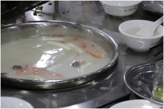 就像我在序言里说的,在北方我们总是以一锅羊肉汤摆在晚饭桌子的中间,香浓醇厚的羊肉汤除湿气,也能暖身子,有了它在饭桌上,家就有了家的感觉。当时室外还有些冷意,但是在天山牧羊庄喝到这样正宗香浓的羊肉汤,登时就有了家中餐桌的感觉。