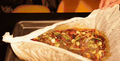 特制的纸更好的锁住了鱼肉的营养和水分,酱料也在包裹中一点点蒸发渗透在鱼肉里。