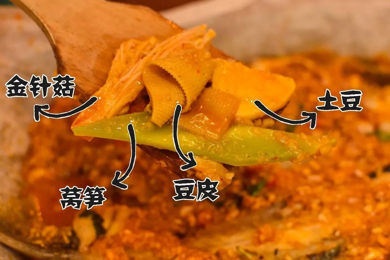 配菜推荐黄金组合--金针菇、土豆、莴笋和豆腐皮,这些可都是吸味素菜,剩下的那些浓郁酱汁缓缓渗入到食材中,真的是太爽了!(我真的要为素菜之王金针菇疯狂打电话!)
