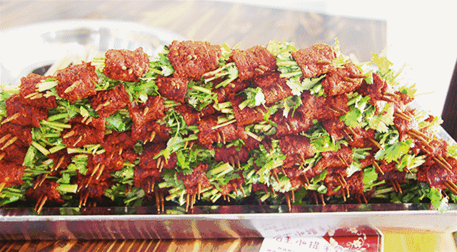 每天现串的食材都放在冷柜里