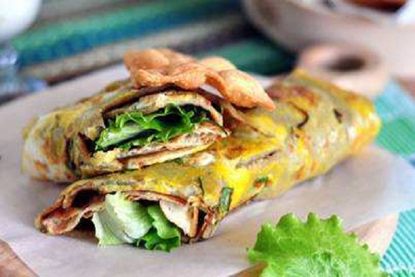 煎饼果子是天津市的着名小吃。天津人把其作为早点,由绿豆面制作的薄饼,鸡蛋,还有馃子(油条)或者薄脆的“馃篦儿”组成,配以面酱,葱末,香菜,辣椒酱(可选)作为佐料。天津人依旧坚持着传统的吃法,正宗煎饼果子中选用的食材只有绿豆面、油条(或果蓖)以及葱花、芝麻及其他佐料。天津之外的省份多有在煎饼里夹火腿、香肠甚至豆腐丝、肉松等原料的,虽被商家冠以煎饼果子之名,却有名无实,早已与正宗相去甚远。