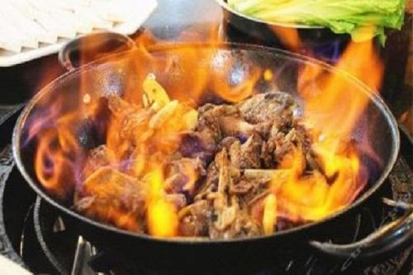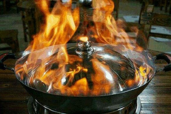 火焰醉鹅从火焰鱼延生而来,做法看似简单,但对厨艺要求颇高。同时,由于其做菜过程都在食客眼皮底下完成,火焰燃烧的状态,更像是一种表演。食客在食鹅之前,等待20多分钟,厨师就在桌旁边,时刻关注锅中的变化,加火、翻炒、各种调料的加入,不紧不慢,仿佛魔术师一般。
