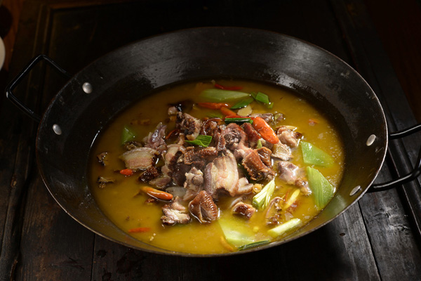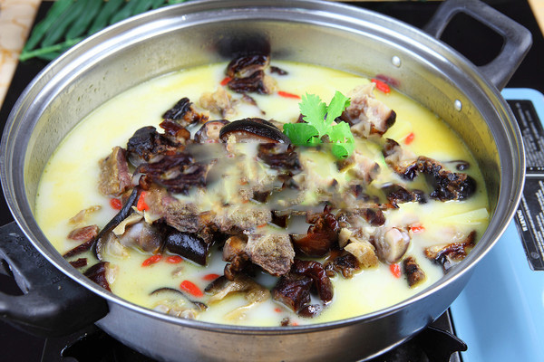 腊味火锅属于湘菜类,以腊鱼、腊鸡、腊鸭为主料,大森叶、姜片、粉丝等为辅料制作的火锅。根据腊味生熟的先后顺序下锅,先下腊鸭肫、腊排骨、腊猪手,等待15分钟后,由山泉水所做的清汤底便逐渐变成乳白色,随后便可放入腊肠、腊肉、腊鸭等腊味,再经过5分钟左右的泡煮即可食用,其味独特,醇香可口。