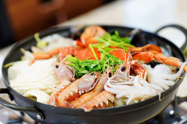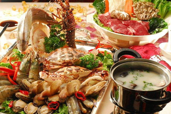 海鲜火锅是中国传统的民间美食,是以海鲜为主要食材,用火锅的方式烹饪。这种做法可以避免多余的调味料和添加剂,保持海鲜原有的风味。广东人吃海鲜火锅,格外讲究,一般海鲜火锅配鱿鱼、海螺肉、鸡肉、牛肉、墨鱼、牛百叶、海参等生料,再加上蔬菜和佐料。食用时先将各种海鲜依次倒入无油的清汤锅底里,煮熟后捞到各人碗中,然后再倒入鸡肉、牛肉等,吃完肉类后,再倒入香菇、青菜等素菜进行清口,食用完后鲜而不腻,味美无比,让人回味无穷。