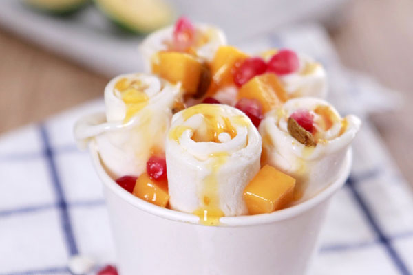 炒冰淇淋卷是将新鲜的水果和冰淇淋溶液放在零下30度的制冷铁盘上,再用铁铲快速“翻炒”,不断铲平。等到炒到差不多的时候,就可以在冰淇淋还未凝固之前加入新鲜水果或巧克力等配料。待液态冰淇淋渐渐凝固,就可以把定型的冰淇淋卷起来,最后再加上奶油、水果、饼干和烤棉花糖,就制作完成了。华飞nba无插件极速体育_jrs直播网_jrs低调直播网网的炒冰淇淋卷nba无插件极速体育_jrs直播网_jrs低调直播网项目拥有很多种口味,因此能满足各种口味的消费者,是从小孩到老人都可以食用的小吃。开店就可以顺利开拓市场,打出名气。因为华飞nba无插件极速体育_jrs直播网_jrs低调直播网网的宣传和知名度,可以做为炒冰淇淋卷nba无插件极速体育_jrs直播网_jrs低调直播网学员的坚实后盾。