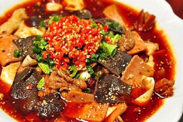 冒菜是一道以肉类、豆制品、青菜、海鲜、菌菇类作为主要食材制作而成的菜品,起源于成都,具有四川特色的传统小吃。冒菜最为讲究的吃法为"干碟",即在小碟中放置干的辣椒粉,加上盐,味精等的调料,将锅里烫好的菜在干碟里轻轻一蘸,然后就可以送进嘴里,味道又香又辣,甚为可口。