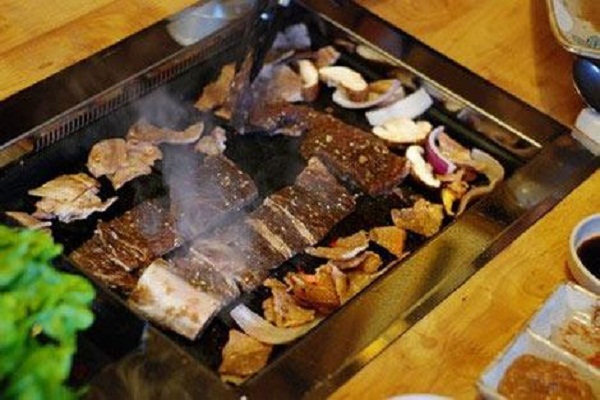 韩国烤肉,韩国料理中一道大菜。韩国烤肉主要以牛肉为主,牛里脊、牛排、牛舌、牛腰,还有海鲜、生鱼片等都是韩国烧烤的美味,尤以烤牛里脊和烤牛排最有名,其肉质的鲜美爽嫩。韩国烤肉吃法有别于中式烤肉和巴西烤肉,其吃法很特别,吃肉的时候要包着生菜叶或苏子叶吃。通常是在手里摊开生菜叶,也可以重叠地铺上苏子叶,夹一块烤肉,夹一点辣椒,抹一点酱,也可以随意地放上泡菜和米饭,最后收拢菜叶,裹成一团即可食用,生菜叶或苏子叶的清爽、烤肉和着辣酱等作料的浓香,使人们享受美食带来的快感。