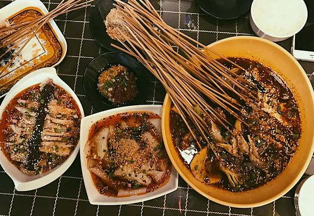 成都火锅、钵钵鸡、冒菜、甜水面、担担面、凉粉、糖油果子、酸辣豆花、抄手、水饺、锅魁、麻婆豆腐、肥肠粉、脑花、夫妻肺片