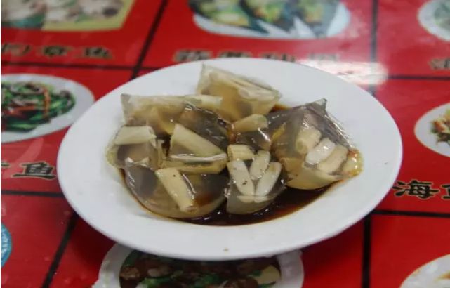 由于是沙虫熬煮冷却之后形成的冻,所以有些人不太敢吃,这个可以看个人的接受能力。