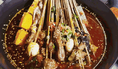 肥肠灌满了汤汁,软烂入味,几乎不用咀嚼就融化一样~看得哈喇子直流,怎么着也得来上两串解解馋!