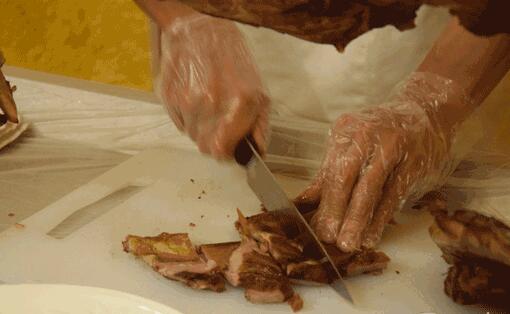 一刀两刀,纯熟的刀工三两刀就切好一整只全羊!看着那一片片的肉肉,我口水已流到餐桌底下了!