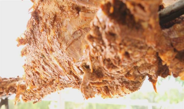 而现如今,为了使烤全羊的味道达到最佳。除了掌握正宗的烤羊技法之外,食材的选择也是非常的严格。必须是当年生,成长期在六个月以内的蒙路羊,蒙路羊学名内蒙黑头绵羊,因其肉质鲜嫩,营养价值高,但又没有山羊肉的膻气,被称为最适合烤羊的品种之一。上好的烤全羊,讲究现杀现烤,从而最大程度的提炼出食材的鲜味,炭火烘烤,反复旋转,使得整只烤羊都能够得到最均匀的受热,温度催化下,食材的质变正悄然发生。![]()