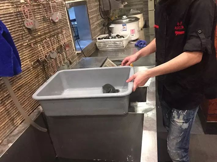 选鱼区都是黑鱼,至于为嘛是黑鱼,小哥说:黑鱼刺少,肉嫩。好吧,不纠结这个了。鱼是41.9元一斤,选鱼时小哥会问你是几个人吃。小编一行2个人,3斤多的鱼足够了。