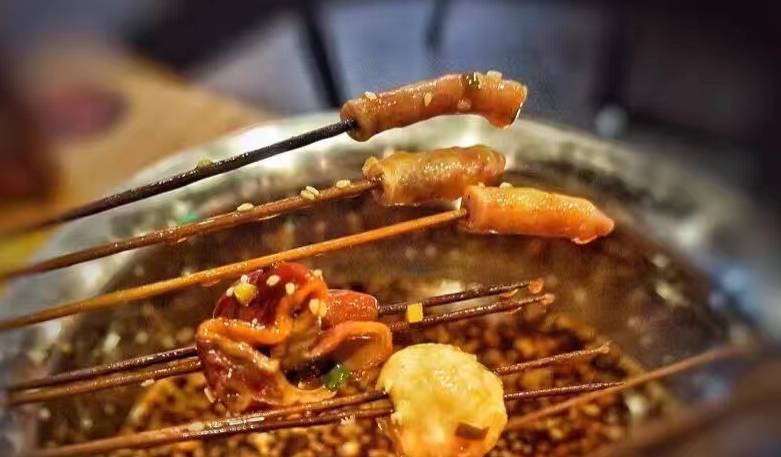 冷锅串串,起源于无辣不欢的四川,脑花、鸭掌、鱿鱼须、藕片、土豆、海白菜,蘸上又麻又辣又香的锅底,实在是让人食指大动。