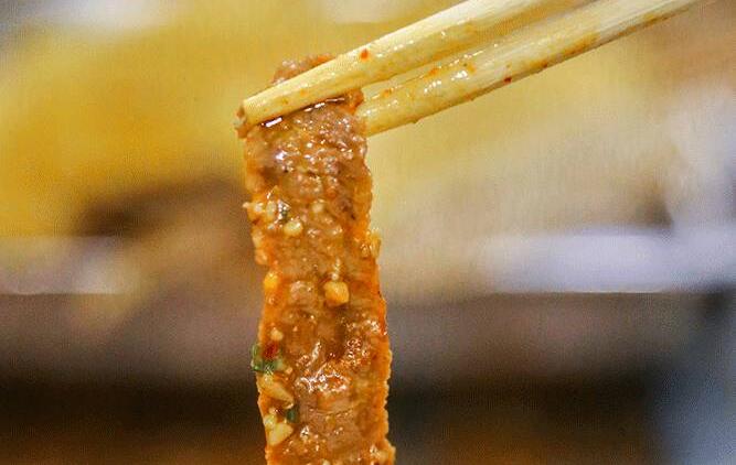 牛肉一把入锅涮到变色即可捞出。从签子上撸下来,均匀地裹上油碟。入口不老不生,肉香和着油碟香,真的好呷醉了!