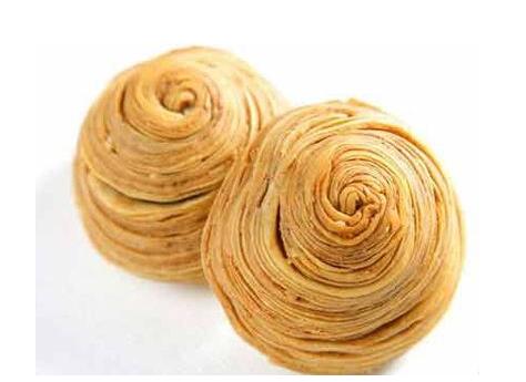 烧饼的历史悠久,最早在东汉时就有了。它最早时称“胡饼”,因从西域甘肃一带传来而得名。制作者多为清真回民,也因西域人将芝麻称为“胡麻”、“脂麻”,传到北京后逐渐更名为“芝麻烧饼”。除芝麻烧饼外,老北京那时还有马蹄烧饼、吊炉烧饼、肉末烧饼、馅烧饼、糖烧饼等多种。当时,制作烧饼也曾有专营的小店铺,几乎老北京满街都是烧饼铺。笔者曾经居住的花市羊市口一条短短的小街里曾经开设有五六家烧饼铺或早点铺,当走在街头时,处处可听到用擀面棍敲打面案的响亮花点声。这种花点也称“花仗”,花仗声是一种五至七声的节奏点,有广告和吆喝的作用,细听起来,各个铺面的花点均不太一样,有地域和师传的区别。据家中的长辈讲,常吃烧饼的主顾从花点上就可以听出烧饼师傅家乡在哪或师承哪一派。那时的烧饼是在建有“马道”的炉灶上烙制成的,即在饼铛上烙至七八成熟后,放入炉灶内围墙凹进的“马道”上去烘烤,这样烤熟的烧饼香酥可口。刚出炉的热烘烘的烧饼,咬一口满嘴酥脆,非常好吃。现在北京虽然到处都能买到各式各样的烧饼,有的还打着老北京某某烧饼的幌子,但实际上早没有那老北京的味儿了。 制作马蹄烧饼用的是一个长方形的砖砌吊炉,下面是煤火,上面正面开有洞口,炉顶上带有几个马蹄凹圆形的印模子。烙制烧饼时,将已在案板上和好的半发面的小饼粘上些芝麻,再刷一层油和糖水,再往炉顶上的模子里一贴,小饼即成马蹄形了。烤熟后,外焦而中空,掰开正好夹进去一个油炸鬼,吃起来香酥甜美,十分可口。老北京有句俗语——“东一伙子,西一伙子,早点就吃马蹄烧饼夹果子”, 就说的是马蹄烧饼。 肉末烧饼则是仿膳饭庄的一味点心,原是清宫御膳食品。传说慈禧太后在宫里有一天夜里梦见吃了一种夹了肉末的烧饼,巧的是次日早膳时正好有肉末烧饼,因为圆了她的梦,慈禧非常高兴, 觉得自己梦见什么就有什么, 就问这肉末烧饼是谁做的, 太监禀告说是御膳房的赵永寿做的, 她一听“永寿”两字, “永寿”代表着健康长寿呀, 她就更高兴了, 于是下旨赏给御厨尾翎和很多银子,肉末烧饼从此也出了名, 被誉为吉祥的“圆梦烧饼”。 螺蛳转儿和干迸儿