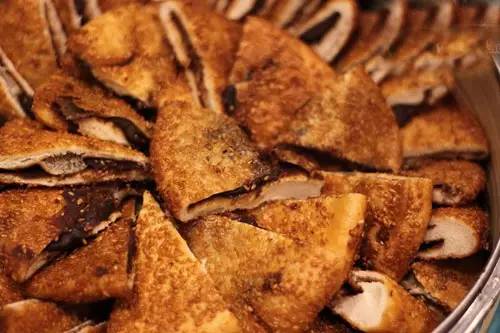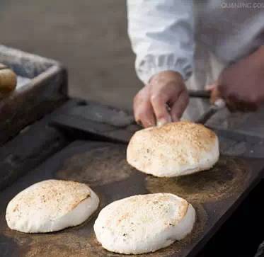 烧饼在东汉时就有了,最早时称“胡饼”,因从西域甘肃一带传来而得名,传到北京后逐渐更名为“芝麻烧饼”。除芝麻烧饼外,老北京还有马蹄烧饼、吊炉烧饼、肉末烧饼、馅烧饼、糖烧饼等多种。当时,几乎老北京满街都是烧饼铺,走在街头时,处处可听到用擀面棍敲打面案的响亮花点声。这种花点也称“花仗”,是一种五至七声的节奏点,有广告和吆喝的作用,细听起来,各个铺面的花点均不太一样,有地域和师传的区别。常吃烧饼的主顾从花点上就可以听出烧饼师傅家乡在哪或师承哪一派。