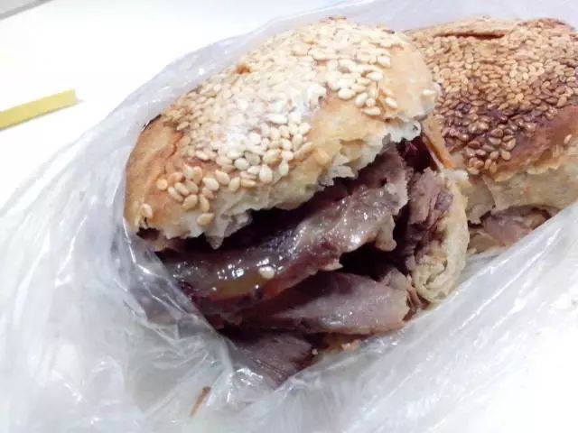 刚出炉的热气腾腾的烧饼,用刀将饼中间对开,但不切断,然后将煮制好的牛肉切片,夹入饼中。香气升腾,让人垂涎三尺。每每此时,机哥都口水直流,简直香到不行!